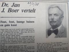 Fientje Stuut was in ain woord n aigenoardeg persoon, n slim aigenoardeg persoon. En doar is niks teveul mit zegd. As Fientje bie ons deur t dörp luip, den ston je der mit open mond noar te kieken. Fientje mit heur laange bainen. Fientjes bainen, dij wazzen zó onwezenliek laank en ook nog zó aldernoarste […]